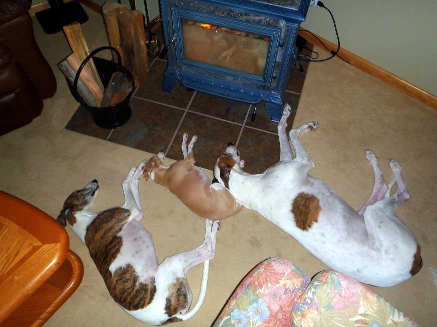 A Dog’s Tale by Janine M. Donoho » 3 Dog Night in front of the wood stove (8 degrees outside)